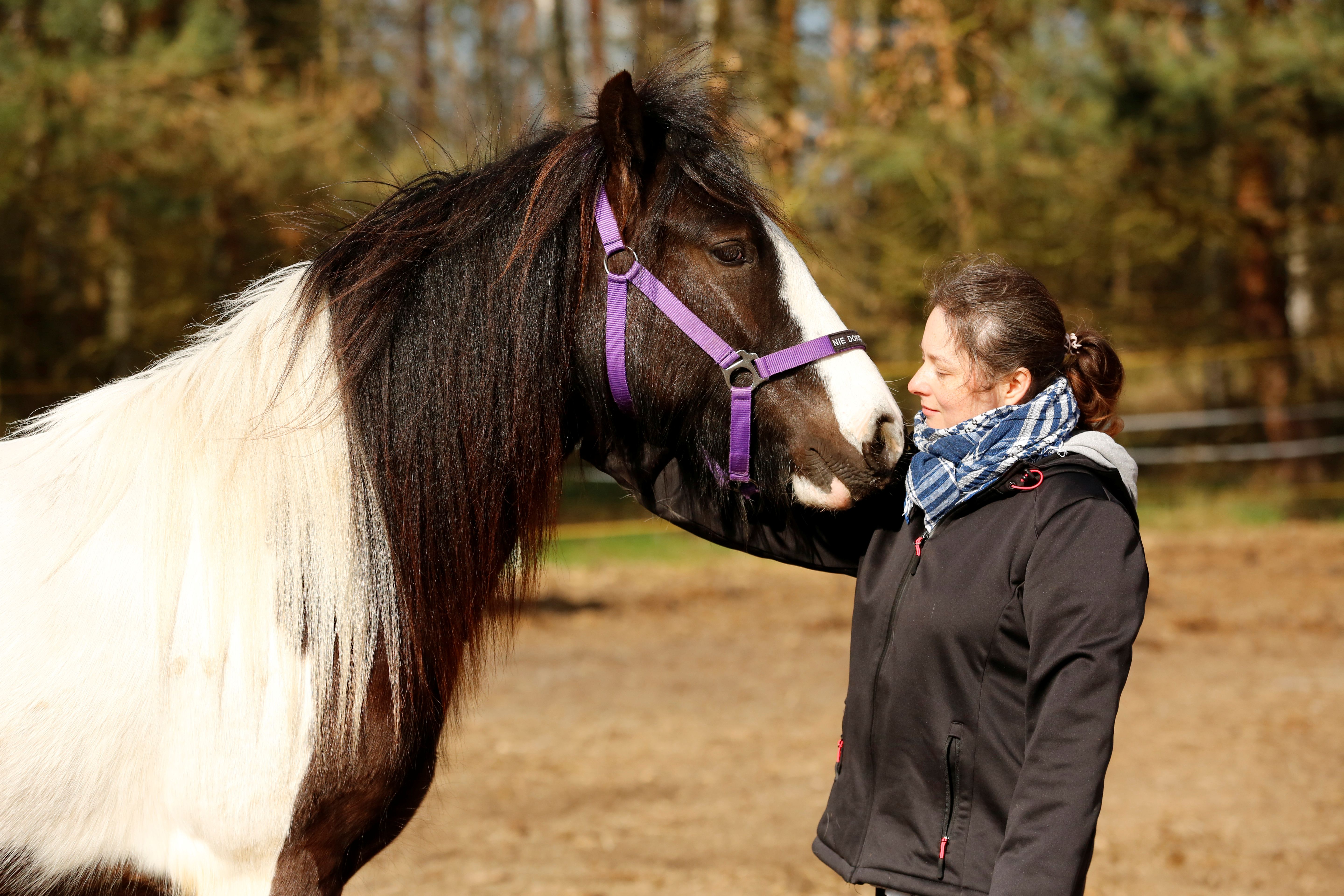 Od dzieciństwa moją pasją są konie. Niestety dorosłe życie kazało tę pasję odłożyć na później. Stosunkowo niedawno nastało to później - ten etap życia kiedy mogę rozwijać moją pasję. Od blisko dwóch lat jestem właścicielką pięknej, srokatej klaczy rasy Gypsy Cob - Samby. Samba jest niezwykle łagodna, przyjazna i proludzka. Wiele mnie nauczyła, ale jeszcze wiele przed nami - w maju dopiero skończy 3 lata. Moim marzeniem są głównie spokojne, leśne wędrówki, ale kto wie, może uda się nam wziąć udział w jakichś zawodach, a w dalszaj przyszłości pojedziemy na przegląd hodowlany i może kiedyś dorobimy się źrebaczka. W chwili obecnej pojawił się pomysł ukończenia wyjazdowego kursu na instruktora hipoterapii. Chciałabym w ten sposób wraz Sambą pomagać innym - otwierać na świat, pokonywać lęki, uczyć skupienia. Obecnie bardzo dużo pracujemy z ziemi, aby Samba była koniem bezpiecznym i niczego się nie bała. Wiele możemy przepracować same, ale więdzę merytoryczną muszę pozyskać z profesjonalnego źródla, od osób z odpowiednimi kwalifikacjami. Dlatego obecny cel to kurs instruktora hipoterapii, który odbywa się na przełomie kwietnia i maja! Trzymajcie kciuki