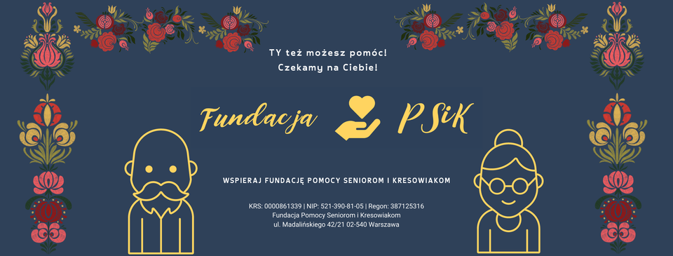 Fundacja Pomocy Seniorom i Kresowiakom (PSiK) to organizacja, która od serca wspiera osoby starsze, łącząc pomoc materialną, społeczną i emocjonalną. Fundacja oferuje wsparcie seniorom w codziennych wyzwaniach – od wizyt lekarskich i rehabilitacji, przez pomoc w sprawach urzędowych, aż po wspólne spacery i spotkania integracyjne.