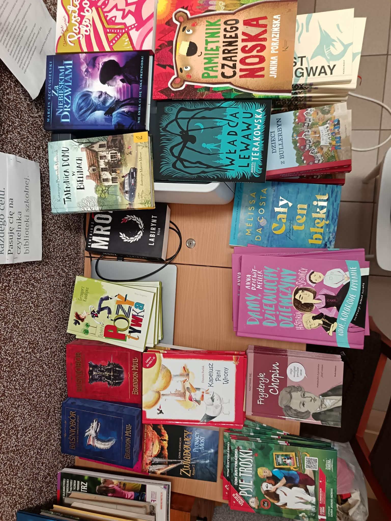 Do biblioteki szkolnej zostały zakupione nowe książki – lektury dla dzieci, które wzbogacą księgozbiór, zachęcą uczniów do czytania. Wśrod nich znalazły zarówno klasyczne tytuły, takie jak ,,Dzieci z Bullerbyn", popularna seria historyczna ,, Damy, dziewuchy, dziewczyny, która przbliża młodym czytelnikom sylwetki niezwykłych kobiet z różnych epok. Wśród nowości znalazł się także baśniowy tytuł ,,Baśniobór', autorstwa Brandon Mull, który przenosi czytelników do świata magii, tajemniczych stworzeń i niezwykłych przygód. Bibliotekę wzbogaciła także ciepła opowieść ,,Pamiętnik Czarnego Noska" autorstwa Janiniy Porazińskiej, a także inne, ciekawe tytuły.