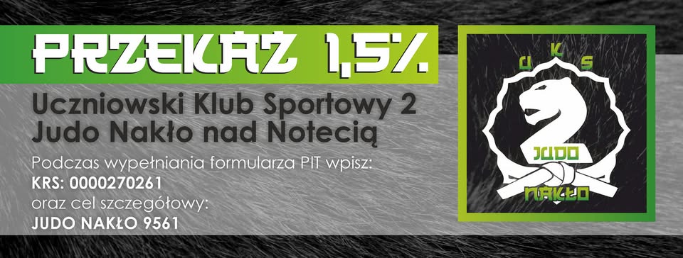 Jeśli chcesz przyczynić się do rozwoju UKS 2 Judo Nakło i wesprzeć młodych judoków, możesz przekazać 1,5% podatku poprzez wpisanie w formularzu PIT: